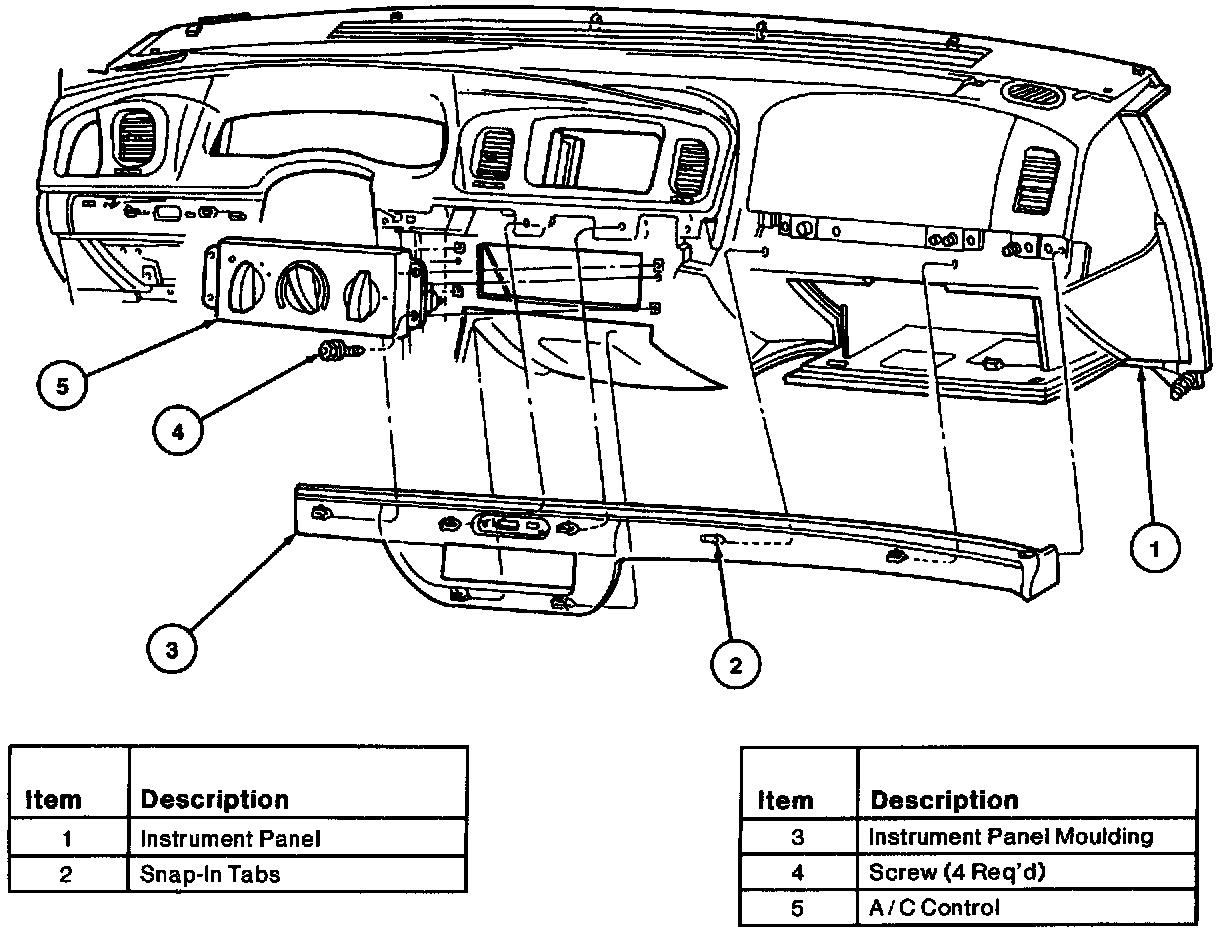 3. Remove four screws from the A/C control and pull the control out of the instrument panel.