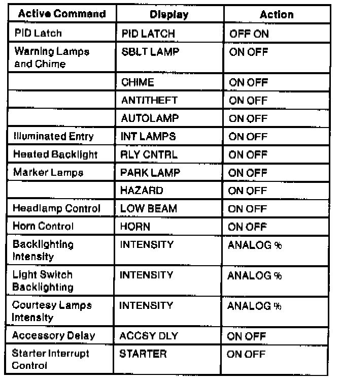 Lighting Control Module Active Command Index