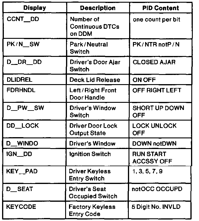 Driver Door Module Parameter Identification Index