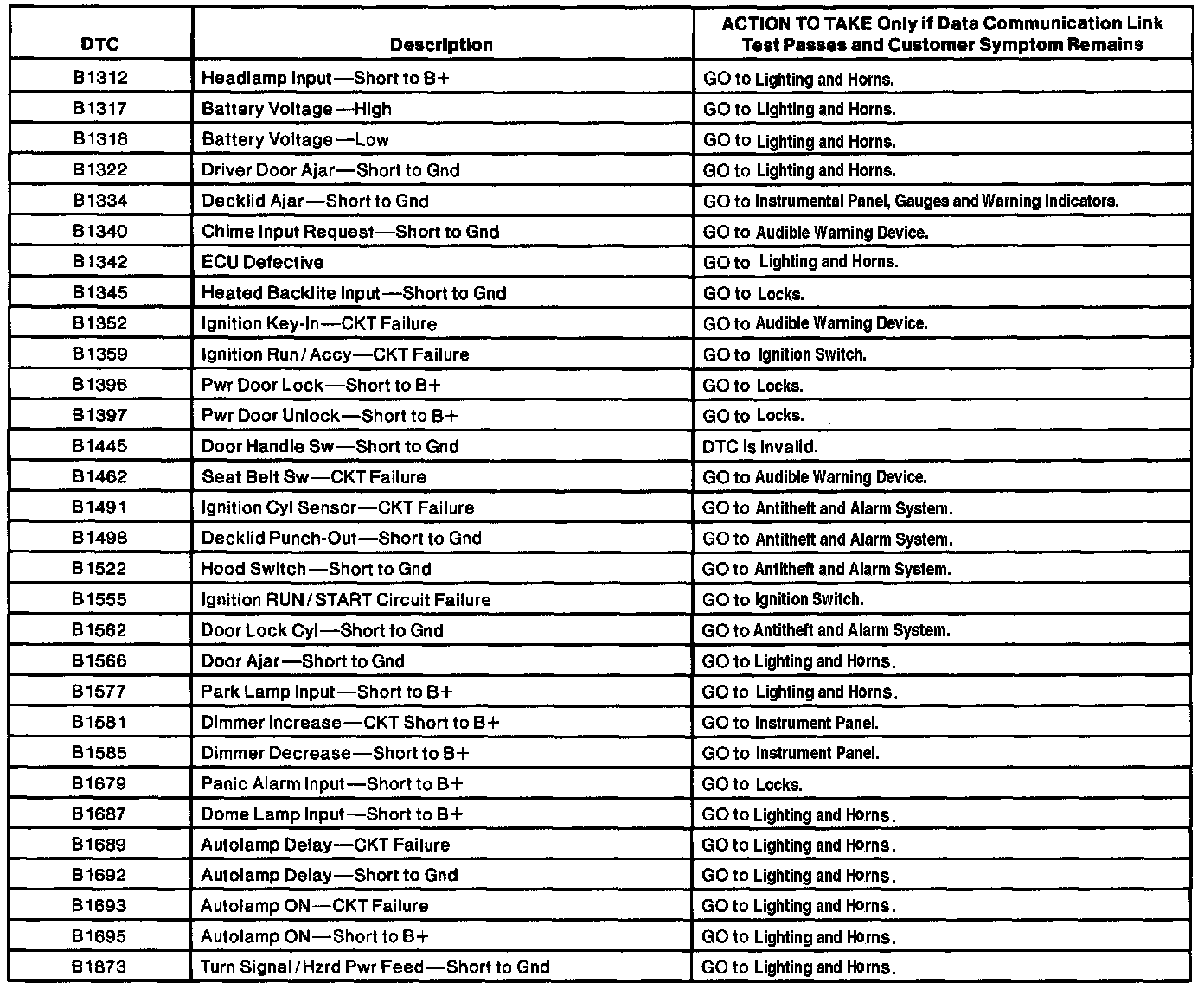Lighting Control Module Diagnostic Trouble Code Index
