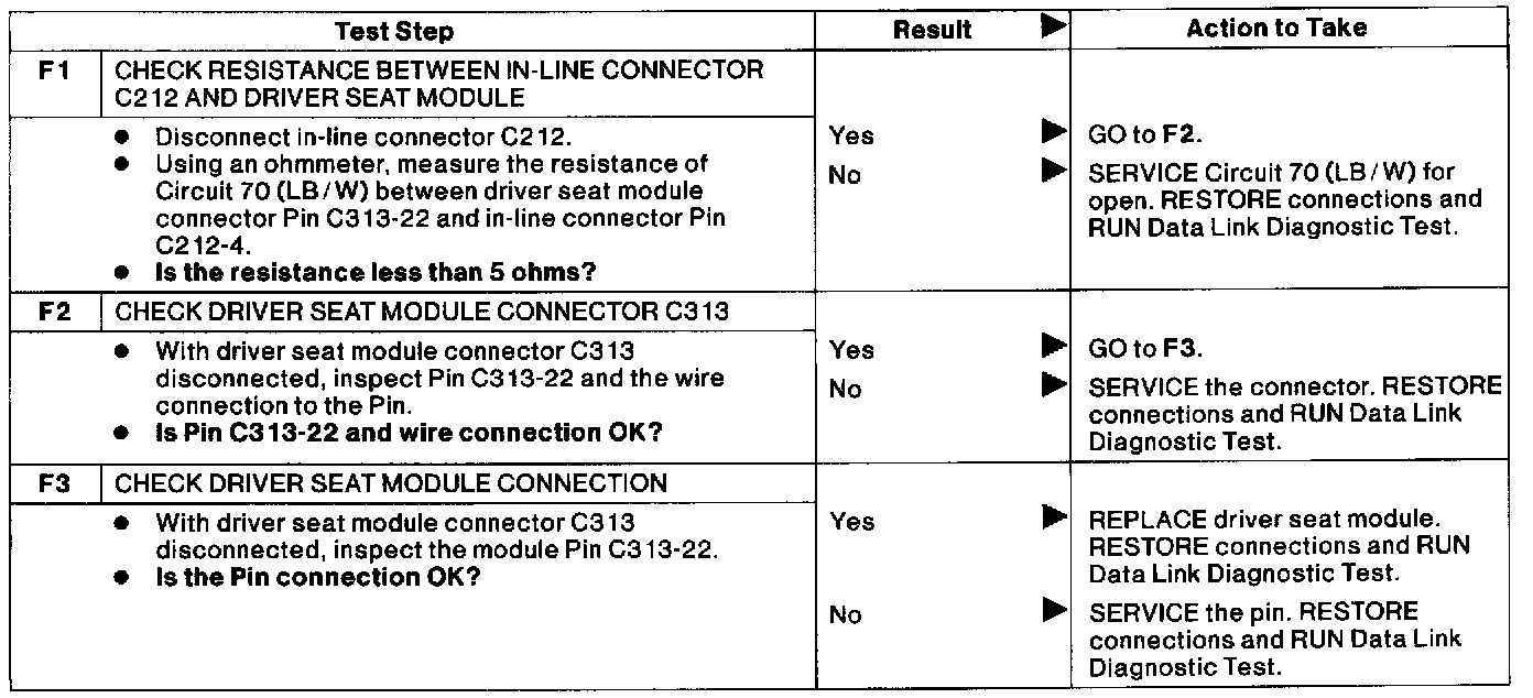 F : Driver Seat Module Does Not Respond