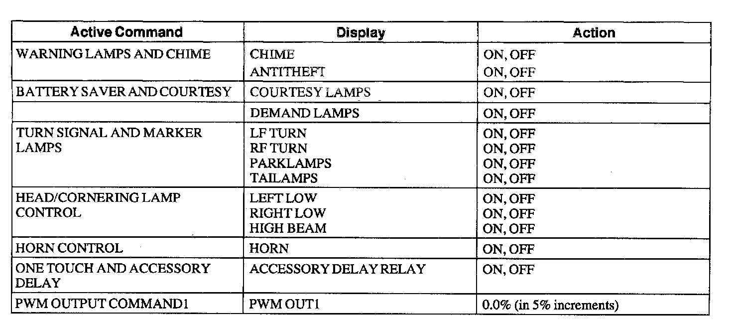 Lighting Control Module Active Command Index
