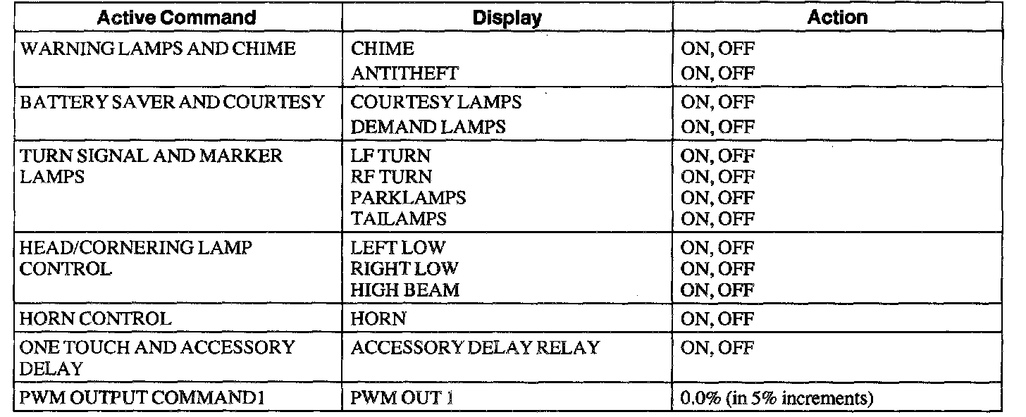 Lighting Control Module Active Command Index