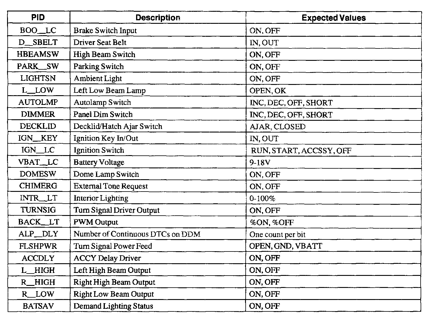 Diagnostic Trouble Code Descriptions