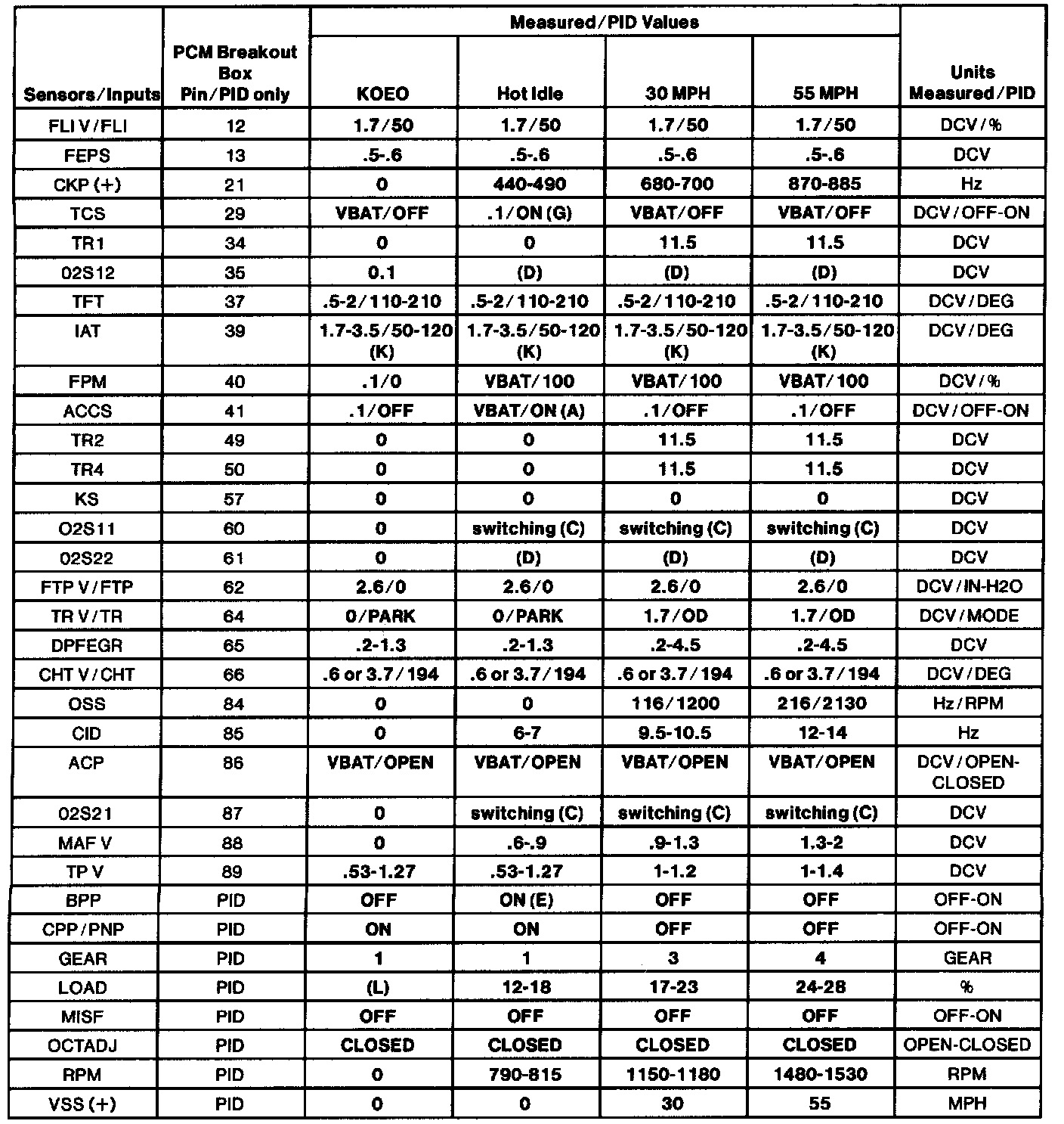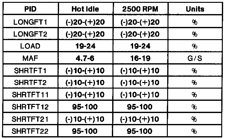 - All generic OBD II readings under no load (PARK or NEUTRAL).