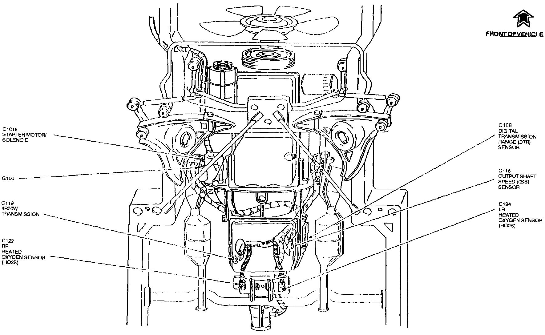 The Digital Transmission Range Sensor is located at lower LF side of transmission.