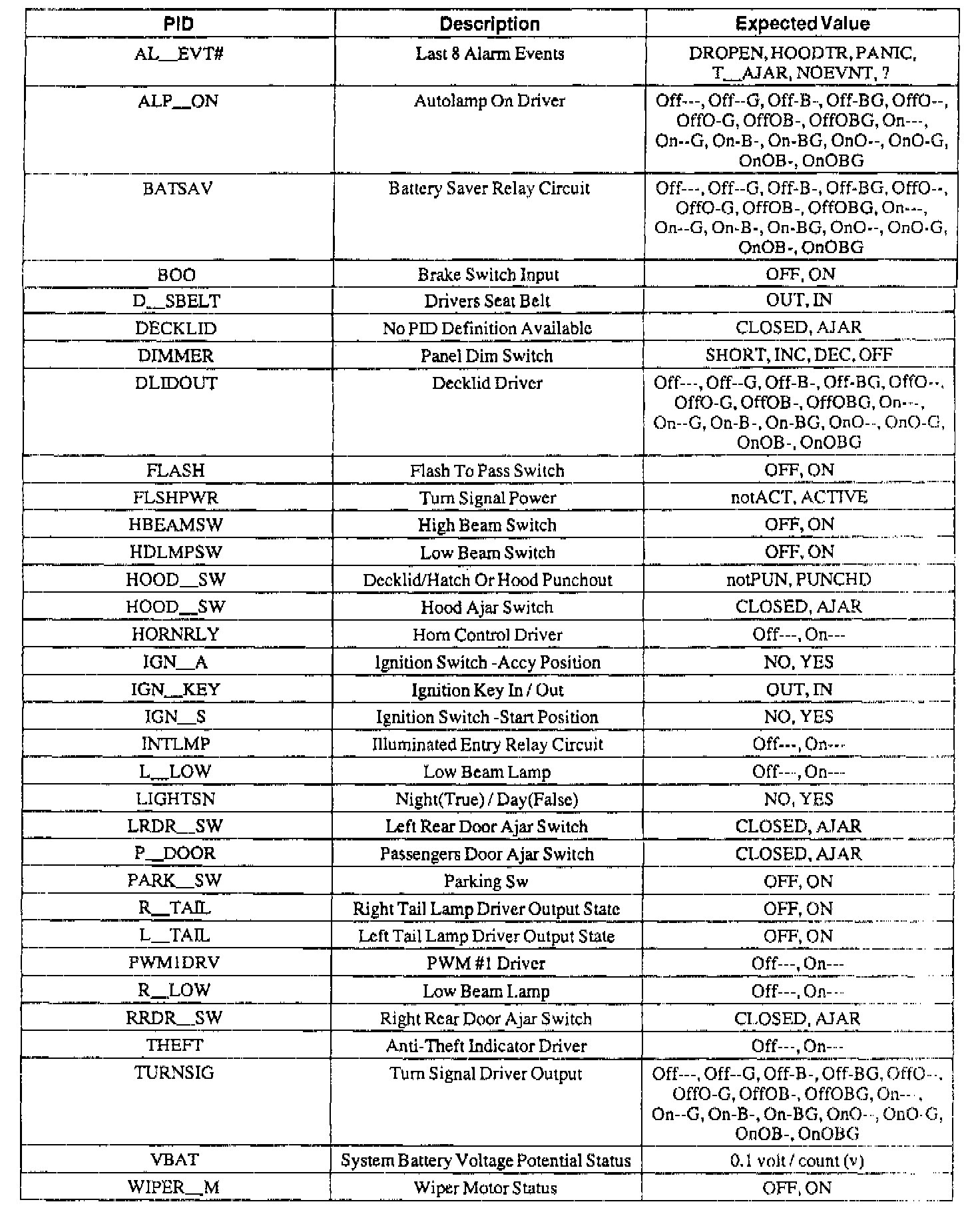 Diagnostic Trouble Code Descriptions