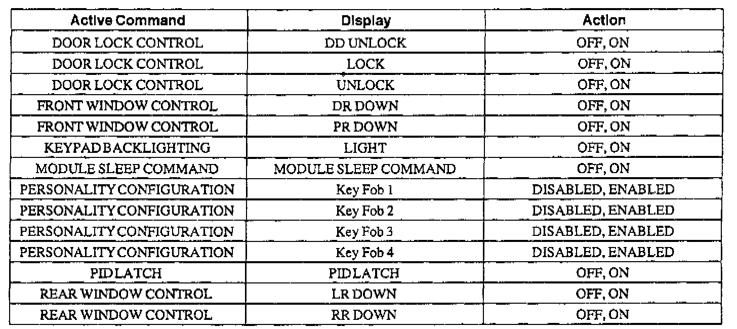 Driver Door Module Active Command Index