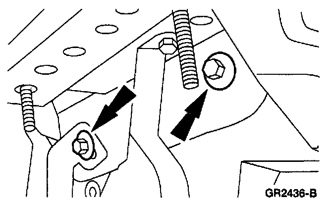 10. Remove the steering column mounting support to instrument cowl brace bolts.