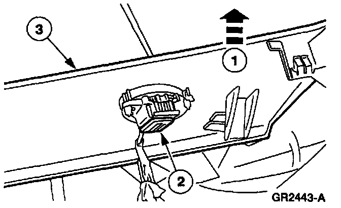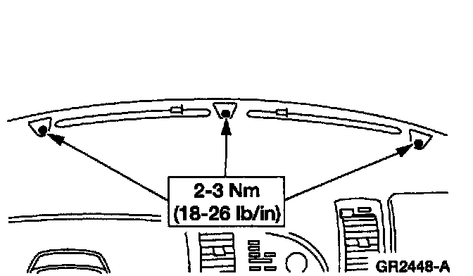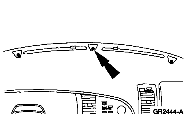 1 Lift upward to release the instrument panel defroster opening grille assembly from the instrument panel.