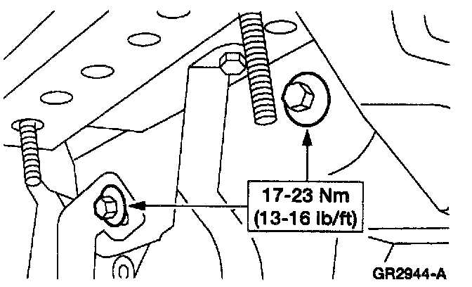 16. Install the steering column mounting support to instrument panel cowl brace bolts.