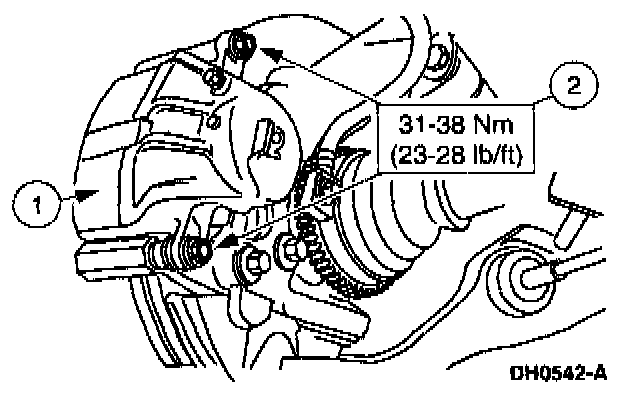 1. Remove the disc brake caliper bolts.