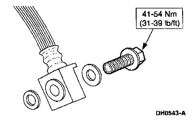 - Use new copper washers; connect the front brake hose.