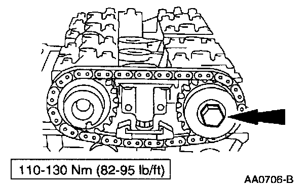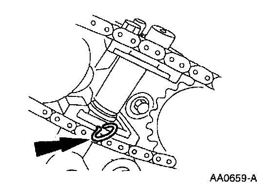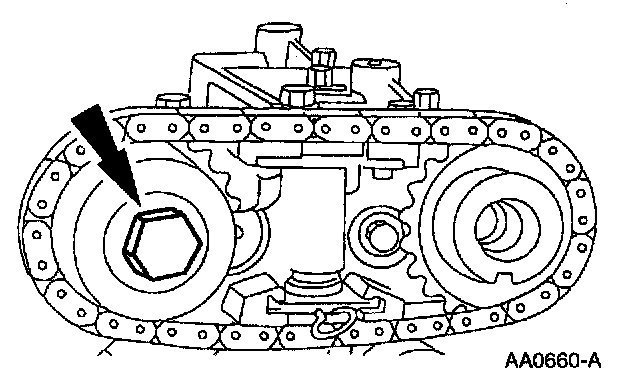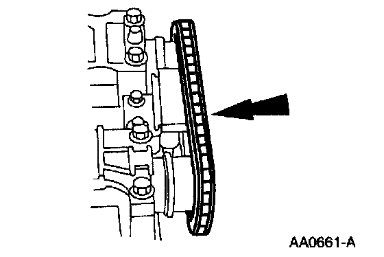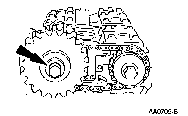 7. Remove the timing chain and the camshaft sprocket.