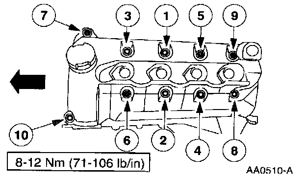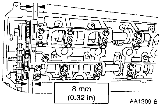 Apply Silicone Gasket and Sealant F7AZ-19554-EA or equivalent meeting Ford specification WSE-M4G323-A4 in two places where the engine front cover meets the LH cylinder head.