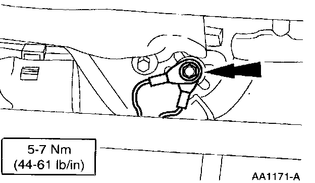 11. Position the engine control sensor wiring on the stud and install the nut.