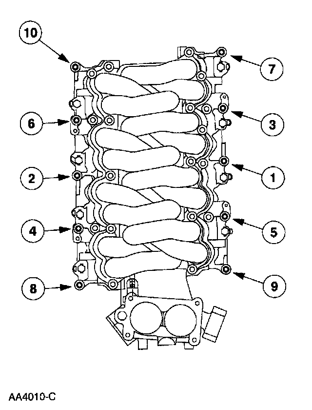 ^ Position the intake manifold assembly.