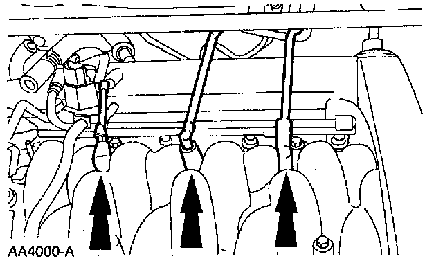 12. Connect the engine control sensor wiring to the eight fuel injectors.