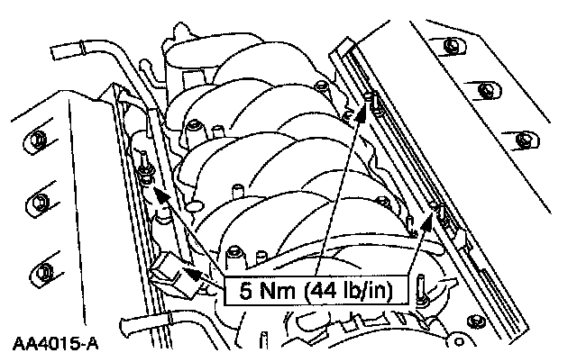 ^ Install the bolts and tighten to 9 Nm (80 inch lbs.) and rotate an additional 90°.