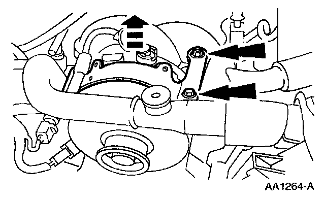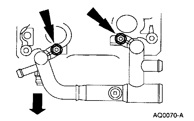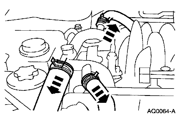 9. Disconnect the coolant hoses from the water bypass tube.