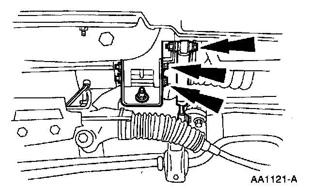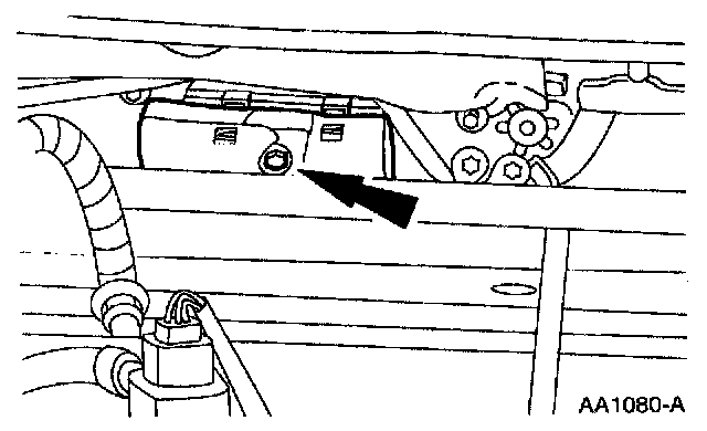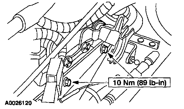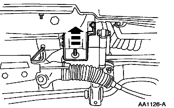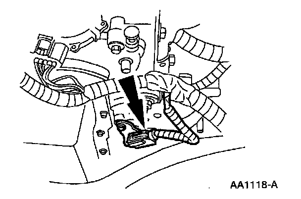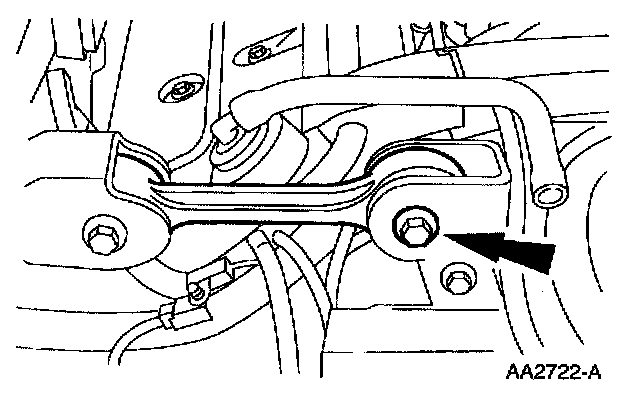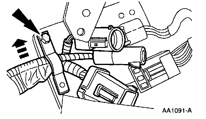 20. Remove the bolt from the retaining bracket and position the main engine compartment harness out of the way.