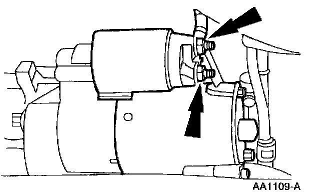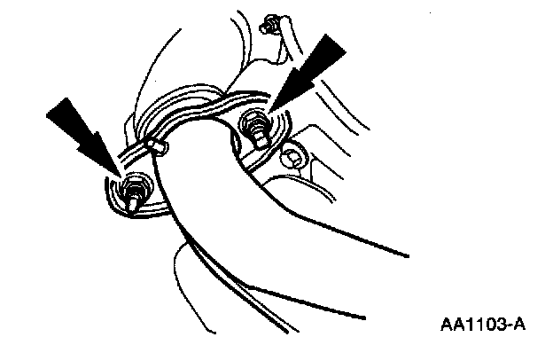 28. Remove the nut and the bolt and position the generator battery lead out of the way.