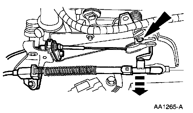16. Disconnect the accelerator cable and the speed control actuator cable from the throttle body.