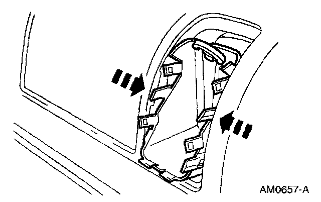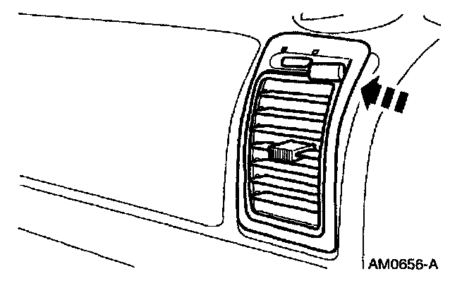4. Working through the glove compartment opening, press in on the sides of the A/C register and remove the A/C register from the instrument panel.