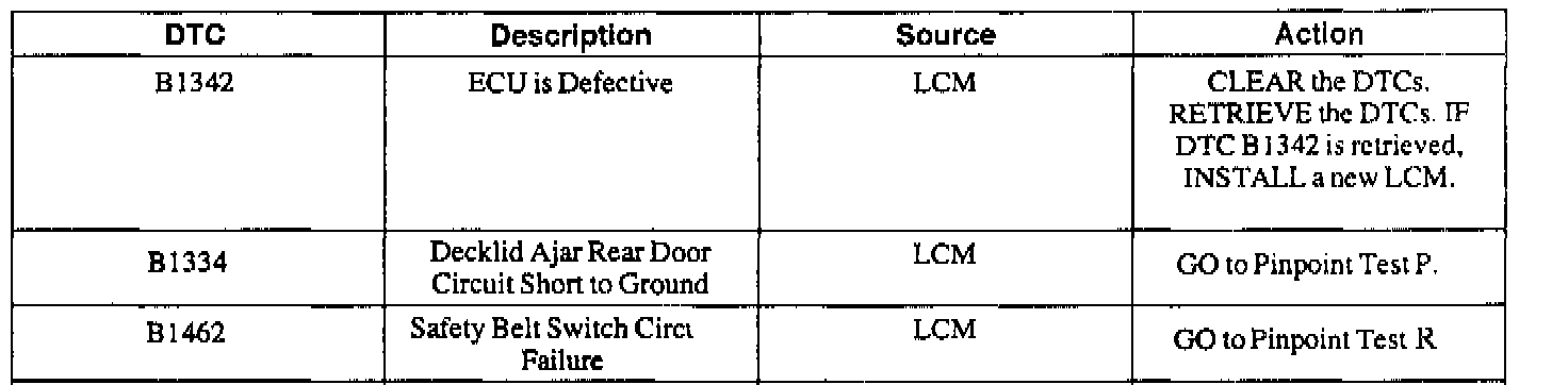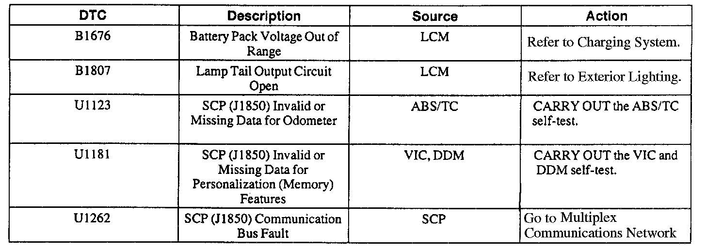 Lighting Control Module (LCM) Diagnostic Trouble Code (DTC) Index