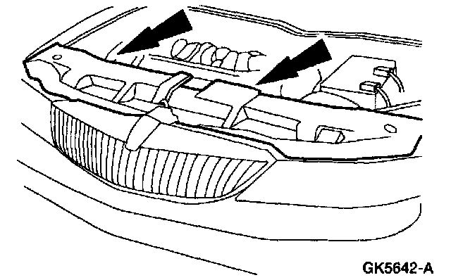 ^ Make sure the upper radiator sight shield tabs are properly seated under the grille moulding prior to installation.