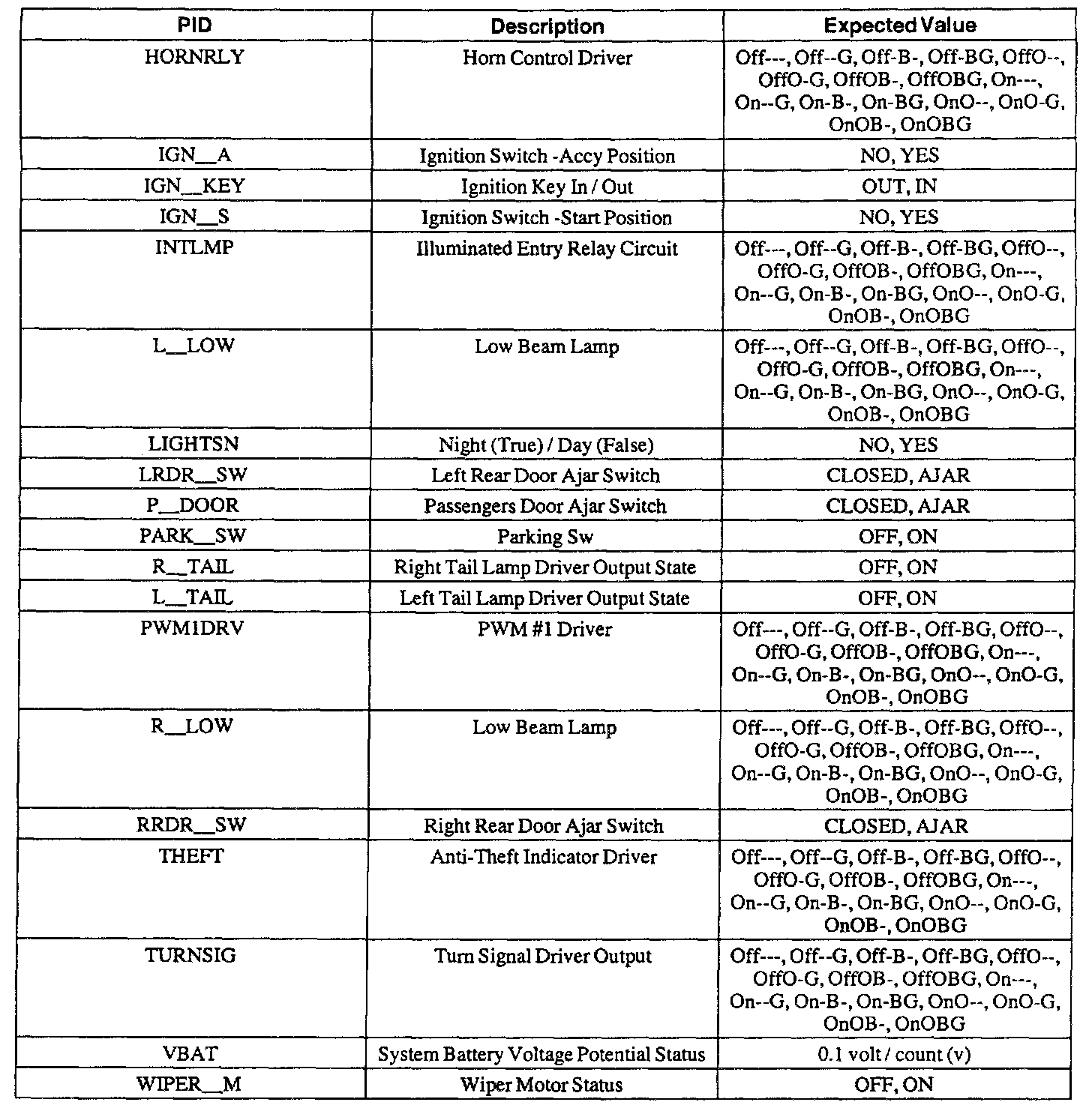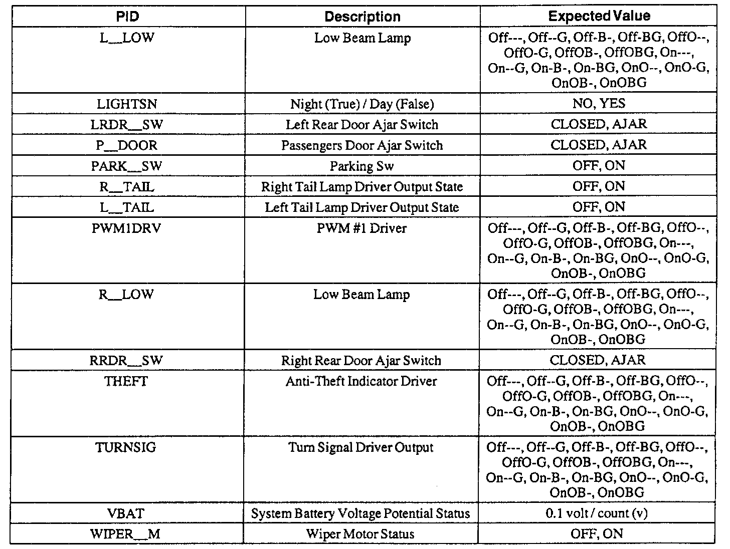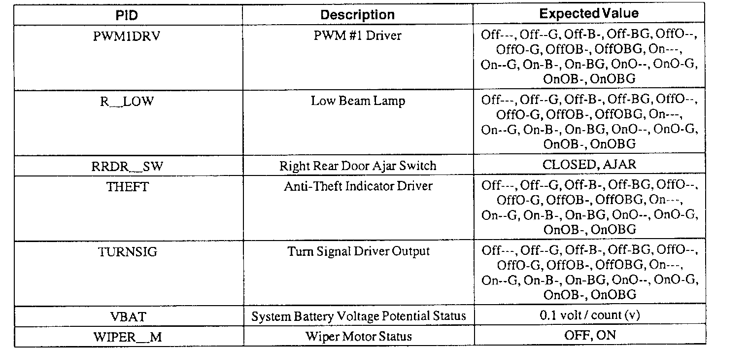 Pinout Values and Diagnostic Parameters