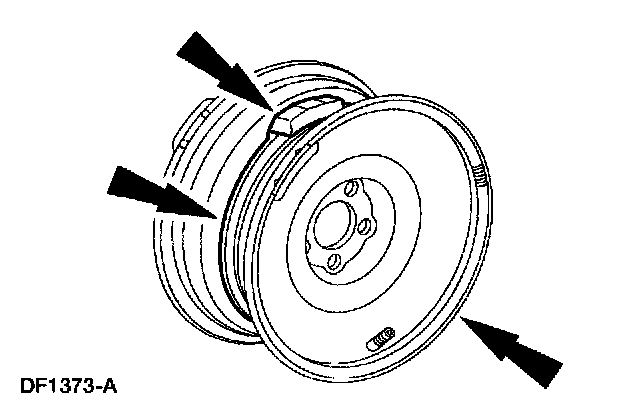 3. CAUTION: Position the low tire pressure sensor on the flat portion of the drop well to prevent damage during tire installation and removal.