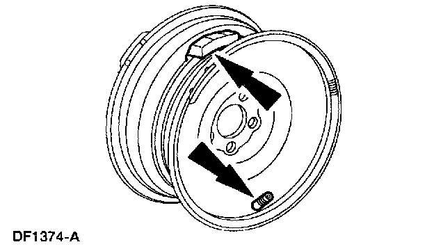 4. Position the notch in the counterweight at the valve stem. Position the tire low pressure sensor 180 degrees from the valve stem as far as possible toward the center of the drop well and on the flat surface.