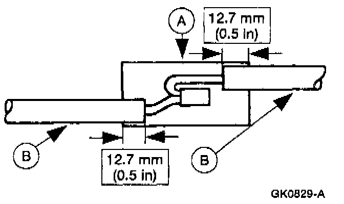 5. Position the (A) heat shrink tube over the (B) wire repair.