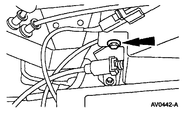 3. Remove the mounting pin and remove the accelerator control splash shield.
