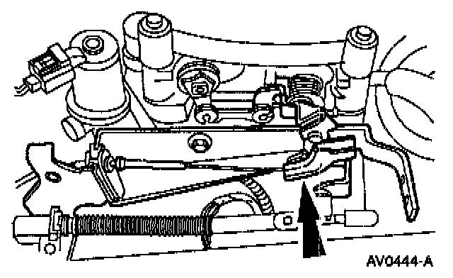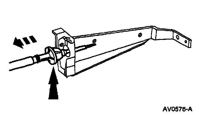 5. Depress the tabs and remove the accelerator cable from the accelerator cable bracket.