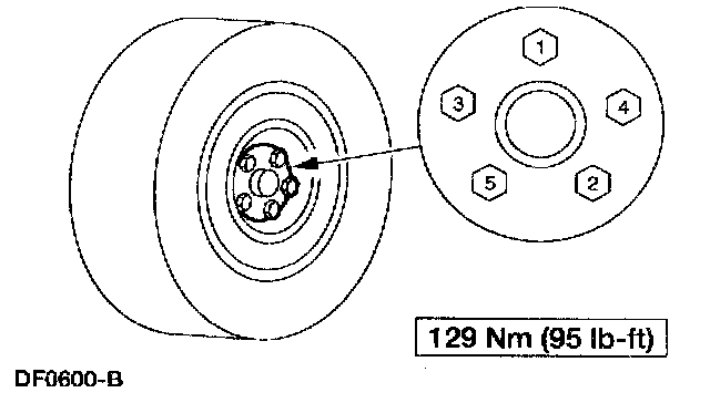 Tighten the wheel nuts to 129 Nm (95 ft. lbs.) in a star-pattern sequence.