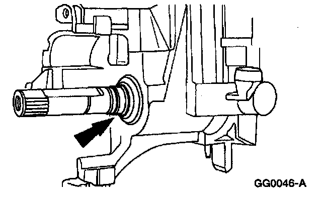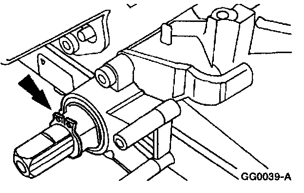 9. On fixed steering column equipped vehicles, remove the snap ring from the bottom of the steering column shaft.