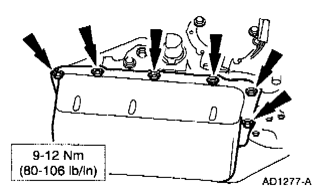 11. Install the bolts retaining the upper transaxle side pan.