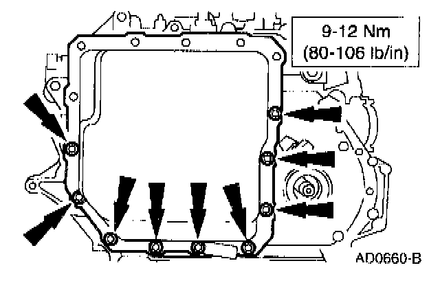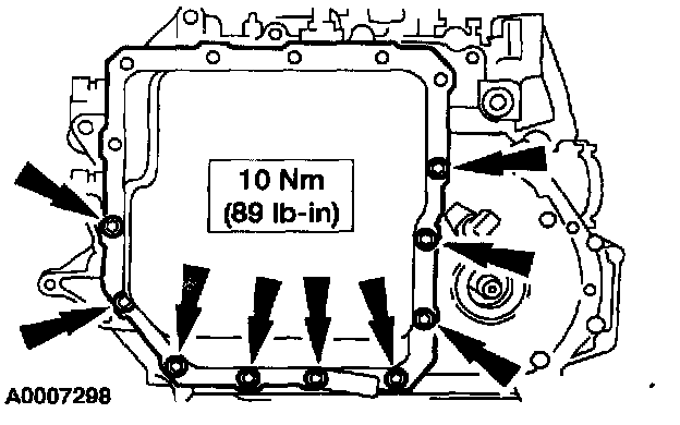 11. Remove the upper transaxle side pan retaining bolts.