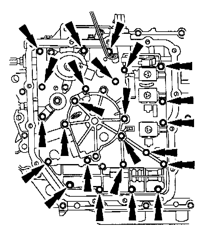Use the valve body guide pins to install the pump assembly and main control valve body. Install retaining bolt and tighten in sequence.