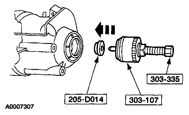 1 Install Front Cover Seal Remover and 5 1/2 inch forcing screw into left differential seal and rotate the Front Cover Seal Remover.