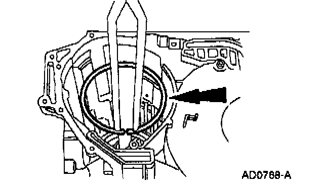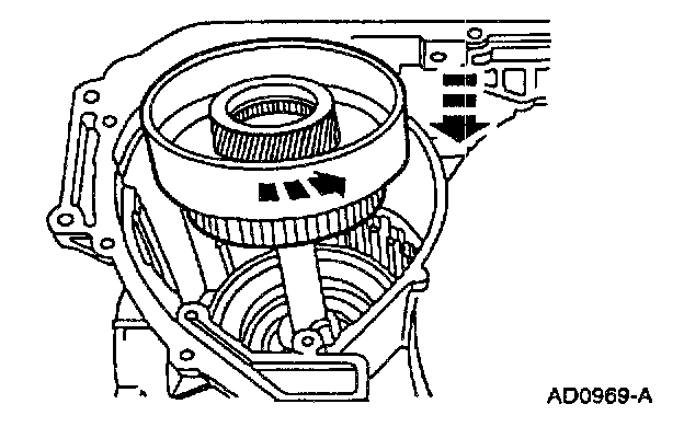 14. CAUTION: If support is not visible on inside diameter of the retaining ring the low/intermediate piston could be damaged.