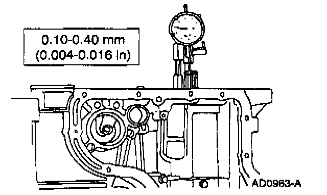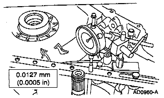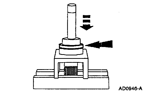 21. Read and record the dial indicator reading. If the dial indicator reading indicates movement more than the specification the next larger beveled ring retainer will need to be used.
