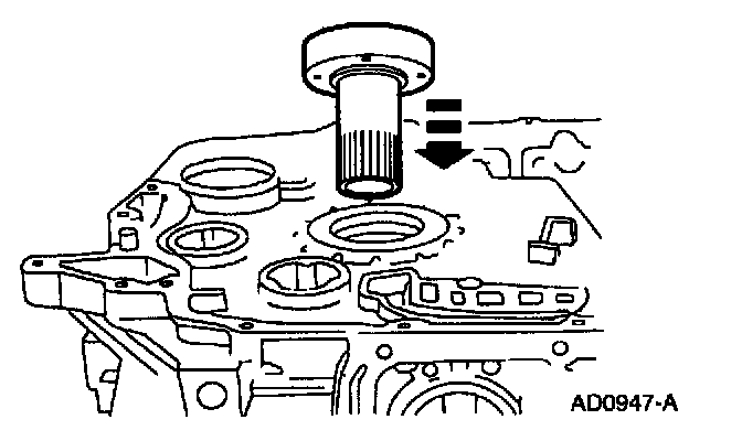 40. Make sure that the reverse clutch cylinder apply tube hole is aligned with the case hole. Remove the tool.