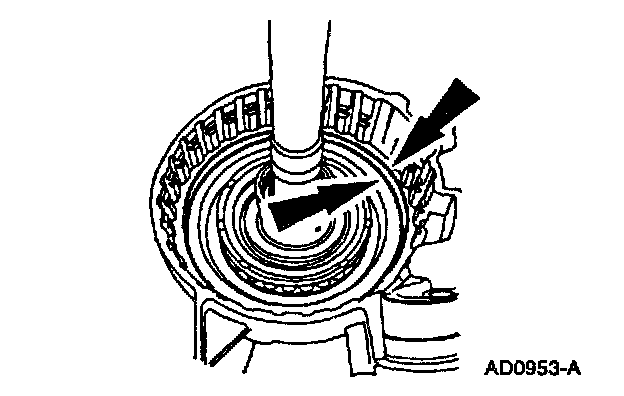 26. NOTE: The beveled retaining ring and the rear planet support must be removed to change the No. 16 thrust race.