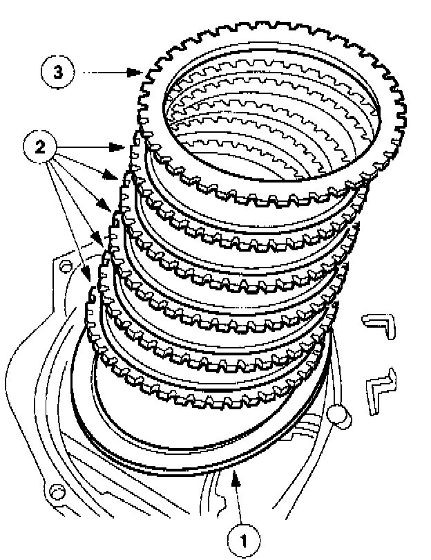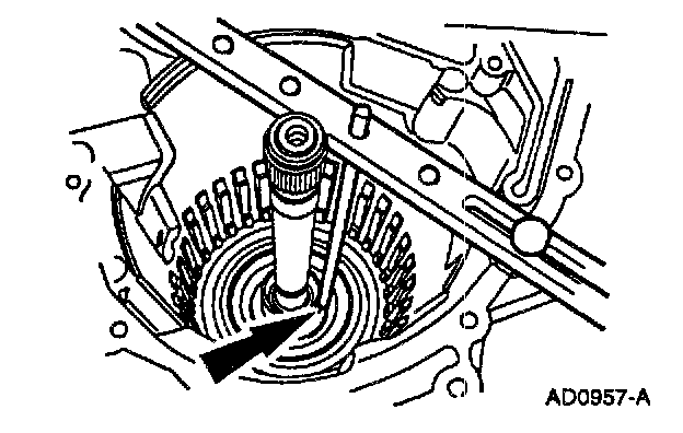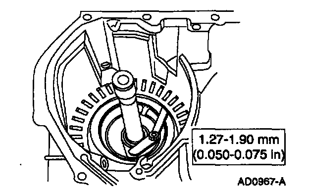 31. Measure the clearance between the clutch pressure plate and the low-intermediate clutch retainer. If the clearance is not within specification a thicker or thinner retainer may be needed.