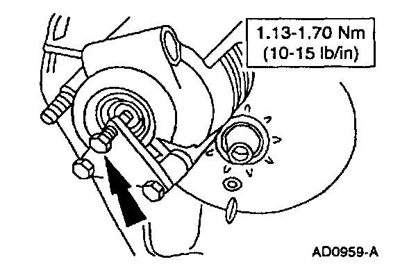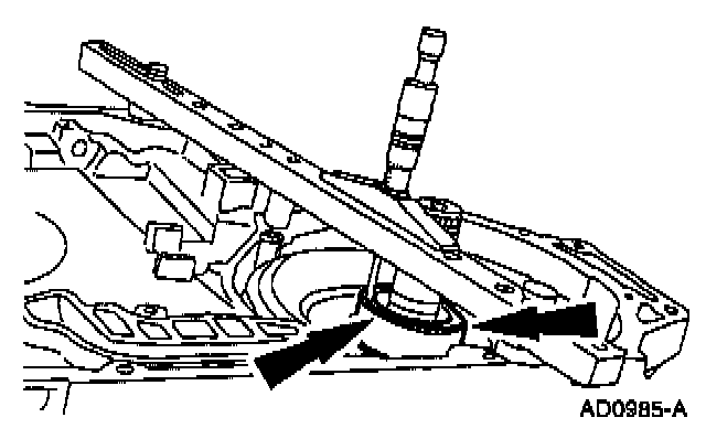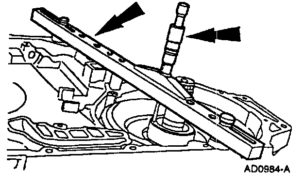 Install the overdrive band anchor strut with the cross hairs facing up.