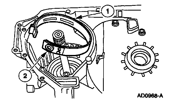 44. NOTE: The foot of the overdrive retainer goes down against the band.