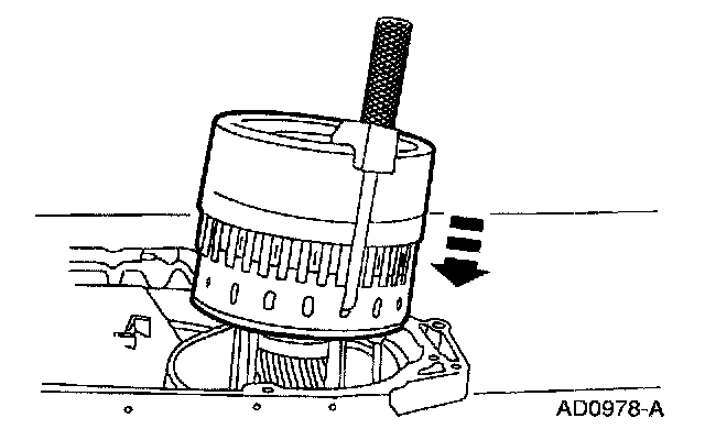 42. Install the forward/intermediate clutch assembly using the Front Clutch Loading Tool. Align the shell and sun gear into the front planet.